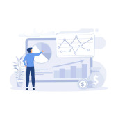 Zdjęcie "Koncepcja platformy obrotu z postaci przy użyciu aplikacji smartfona. Analityka rynku finansowego online. Handlarz kryptowaluta. Nowoczesny płaski styl strony lądowania, aplikacja mobilna, obrazy bohatera." może być wykorzystywane do celów osobistych i komercyjnych zgodnie z warunkami zakupionej licencji Royalty-free. Obraz jest dostępny do pobrania w jakości wysokiej rozdzielczości do 5760x3840.