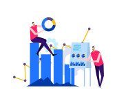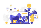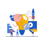 Zdjęcie "Rozwiązanie, innowacyjne koncepcje decyzyjne o charakterze biznesowym. Pracownicy działu reklamy. Promocja produktu, analiza rynku. Nowoczesny płaski styl strony lądowania, aplikacja mobilna, obrazy bohatera." może być wykorzystywane do celów osobistych i komercyjnych zgodnie z warunkami zakupionej licencji Royalty-free. Obraz jest dostępny do pobrania w jakości wysokiej rozdzielczości do 5760x3840.