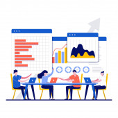 Zdjęcie "Koncepcja statystyki bazy danych z charakterem. Kierownicy biur analizują gromadzenie danych, przegląd informacji, rozwój biznesu. Nowoczesny płaski styl strony lądowania, aplikacja mobilna, obrazy bohatera." może być wykorzystywane do celów osobistych i komercyjnych zgodnie z warunkami zakupionej licencji Royalty-free. Obraz jest dostępny do pobrania w jakości wysokiej rozdzielczości do 5760x3840.