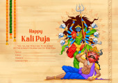 Ilustracja bogini Kali Maa na Diwali Kali Pooja tle indyjskiego festiwalu