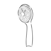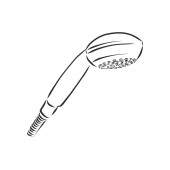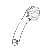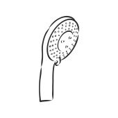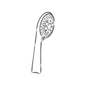 Ręcznie rysowany szkic głowicy prysznicowej na białym tle. Urządzenia toaletowe. Wyposażenie łazienki