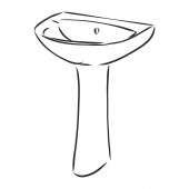 Ręcznie rysowany szkic głowicy prysznicowej na białym tle. Urządzenia toaletowe. Wyposażenie łazienki