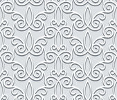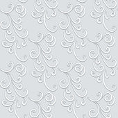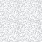Biały bezszwowy wzór z wycinankami papierowymi, kręcone kwiatowe ozdoby, eleganckie tło do projektowania zaproszeń ślubnych
