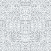 Zdjęcie "Biały bezszwowy wzór z wycinankami papierowymi, kręcone kwiatowe ozdoby, eleganckie tło do projektowania zaproszeń ślubnych" może być wykorzystywane do celów osobistych i komercyjnych zgodnie z warunkami zakupionej licencji Royalty-free. Obraz jest dostępny do pobrania w jakości wysokiej rozdzielczości do 5760x3840.
