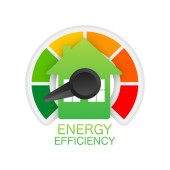 Schemat efektywności energetycznej i koncepcja domu. Wektor domowej ikony. Energia słoneczna. Zielony dom. Ilustracja wektora