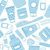 Opieka jamy ustnej i zdrowie. Narzędzia do czyszczenia zębów: szczoteczka do zębów, pasta do zębów, dentystyka, nici dentystyczne, płyn do płukania ust, skrobak do języka. Higiena jamy ustnej, pielęgnacja zębów. Wektor płaska ilustracja kreskówka, bezszwowy wzór