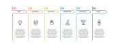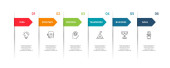 Streszczenie strzałek wykresu, schemat z 5 krokami, opcjami, częściami lub procesami.