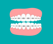 Wektor kreskówki ilustracja modelu szczęki dentystycznej izolowane na niebieskim tle. Pojęcie stomatologiczne.