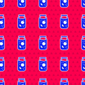 Plastikowa butelka, bezszwowy wzór na ciemnoniebieskim tle.
