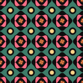 Mały zegar, bezszwowy wzór na ciemnym różowym tle.