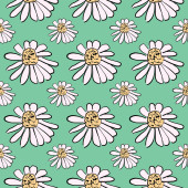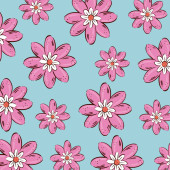 Kolorowe małe kwiaty, bezszwowy wzór na niebieskim tle dziecka.