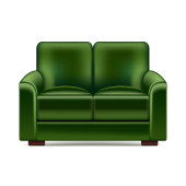 Mała zielona sofa, ilustracja, wektor na białym tle