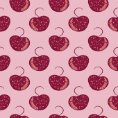 Słodki różowy granat, bezszwowy wzór na fioletowym tle.