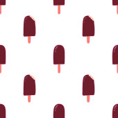 Czerwone lody na patyku, bezszwowy wzór na czerwonym tle.