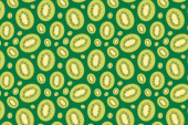 Kiwi w plasterkach, bezszwowy wzór na niebieskim tle.