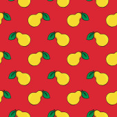 Żółta smaczna gruszka, bezszwowy wzór na różowym tle.