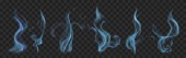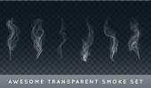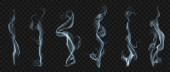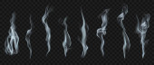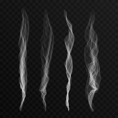 Zestaw kilku realistycznych przezroczystych dymów lub pary w kolorze białym i szarym, do stosowania na ciemnym tle. Przejrzystość tylko w formacie wektorowym