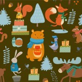 wakacje bezproblemowy wzór z kreskówek zwierząt, drzew, elementów dekoracji na neutralnym tle. kolorowy wektor dla dzieci, płaski styl. Rysunek dłoni. Projekt dla dzieci tkaniny, tkaniny, nadruk, opakowanie.