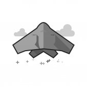 Ikona myśliwca jet w kolorze naklejki. Wojskowy atak samolotów awionika