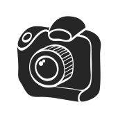 Ikona naprawy aparatu w grubym obrysie. Czarno-biały monochromatyczny wektor ilustracja.