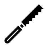 Ikona noża do chleba w grubym zarysie. Czarno-biały monochromatyczny wektor ilustracja.
