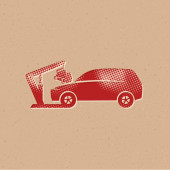 Ikona samochodu w stylu półtonowym. Grunge tło wektor ilustracja.