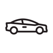 Ikona samochodu w grubym obrysie. Czarno-biały monochromatyczny wektor ilustracja.