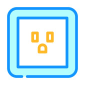 Chroniona ikona gniazdka elektrycznego w kolorze naklejki.