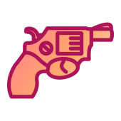 Zdjęcie "Ikona pistoletu rewolwerowego w kolorze naklejki. Niebezpieczeństwo broni Policja uzbrojona" może być wykorzystywane do celów osobistych i komercyjnych zgodnie z warunkami zakupionej licencji Royalty-free. Obraz jest dostępny do pobrania w jakości wysokiej rozdzielczości do 5760x3840.