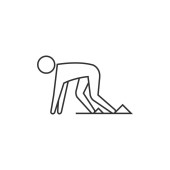 Zdjęcie "Począwszy ikona biegacza w grubym obrysie stylu. Czarno-biały monochromatyczny wektor ilustracja." może być wykorzystywane do celów osobistych i komercyjnych zgodnie z warunkami zakupionej licencji Royalty-free. Obraz jest dostępny do pobrania w jakości wysokiej rozdzielczości do 5760x3840.