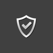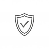 Ikona tarczy ze znakiem kontrolnym w grubym obrysie. Czarno-biały monochromatyczny wektor ilustracja.