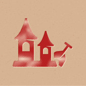 Ikona gniazda ptaków w stylu półtonowym. Grunge tło wektor ilustracja.