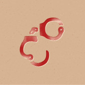 Ikona wykresu ciasta w stylu półtonowym. Grunge tło wektor ilustracja.