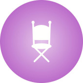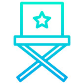 Ikona reżysera filmowego w kolorze naklejki. Przemysł rozrywka Hollywood kino