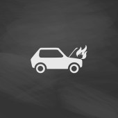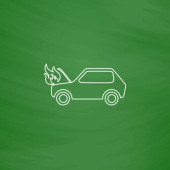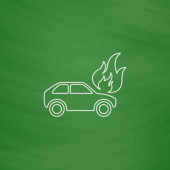 Samochód na ikonę ognia w stylu półtonowym. Grunge tło wektor ilustracja.