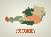 Austria mapa Plakat kraju z regionami Stary grunge tekstury Kształt Austrii z nazwą kraju