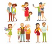 Wielki, szczęśliwy, wielopokoleniowy portret krewnego rodzeństwa. Wektorzy. Seniorzy matka i ojciec z dziećmi, dzieci wnuki i dziadkowie. babcia dziadek mama tata.