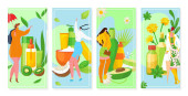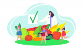 Zdjęcie "Wegetariańska koncepcja żywności dietetycznej, ilustracja wektora. Ludzie mają charakter w zdrowym stylu życia, świeże wegetariańskie odżywianie. Owoce kreskówki ekologicznej" może być wykorzystywane do celów osobistych i komercyjnych zgodnie z warunkami zakupionej licencji Royalty-free. Obraz jest dostępny do pobrania w jakości wysokiej rozdzielczości do 5760x3840.