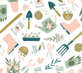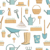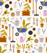 Narzędzia ogrodowe i materiały bezszwowe wzór. Ilustracja wektora