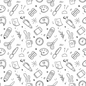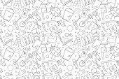 Płynny wzór tła na baby shower, nowe powitanie dziecka i kartka ogłoszeniowa. Czarno na białym. Ilustracja wektora