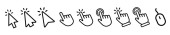 Zdjęcie "Kolekcja kliknięć kursora. Myszy komputerowe kursora, odizolowane. Klikając ikony wektora kursora. Wskaż palcem. Ilustracja wektora" może być wykorzystywane do celów osobistych i komercyjnych zgodnie z warunkami zakupionej licencji Royalty-free. Obraz jest dostępny do pobrania w jakości wysokiej rozdzielczości do 5760x3840.