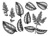 Hand sketched Mint botanical illustration with leaves and flowers. Pepper mint - hand-drawn medical herbs and spices. Engraved style herbal plant. Culinary sage on white background.