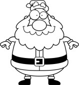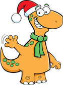 Czarno-biała ilustracja dinozaura w kostiumie Świętego Mikołaja trzymającego gwiazdę.