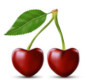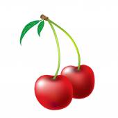 Słodka, dojrzała wiśnia. Wektorowa realistyczna ilustracja izolowana na białym