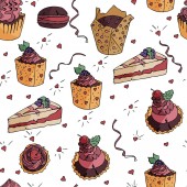 Urodziny ślub smaczne pyszne deser ciasto ilustracja bezszwowy wzór