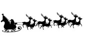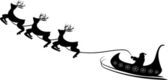 Wektor Boże Narodzenie czarno-białe ilustracja z Santa Claus jazdy jego sanie ciągnięte przez reniferów.