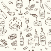 Kuchnia grecka Wektor płynny wzór z jedzeniem i piciem ręcznie rysowane bazgroły.
