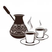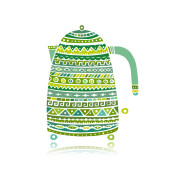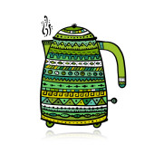 Ceremonia herbaty. Dzbanek do herbaty z filiżanką, szkic do projektu