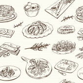 Środkowo-wschodnie menu ikony bazgrołów Ilustracja wektora na tablicy