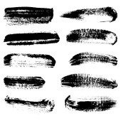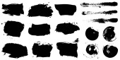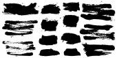 Wektorowy zestaw pociągnięć pędzla grunge. Czarne plamy farby. Element dla Twojego projektu.